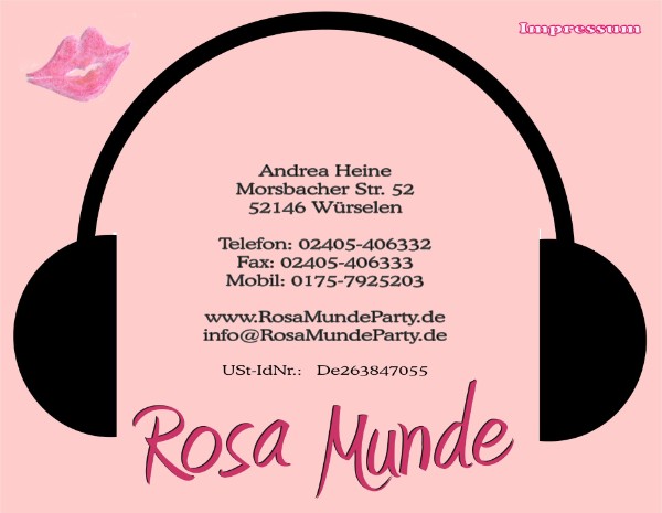 Urheberrecht Copyright © 2012 by Andrea Heine. Alle Rechte vorbehalten. Die Inhalte dieser Website sind urheberrechtlich geschützt. Ohne schriftliche Genehmigung seitens Andrea Heine darf der Inhalt dieser Seite in keiner Form reproduziert oder unter Verwendung elektronischer Systeme verarbeitet, vervielfaeltig oder verbreitet werden, es sei denn Gegenteiliges wäre ausdrücklich vermerkt. Trotz sorgfältiger Kontrolle übernehme ich keine Haftung für die Inhalte externer Links. Für den Inhalt der verlinkten Seiten sind ausschliesslich deren Betreiber verantwortlich.